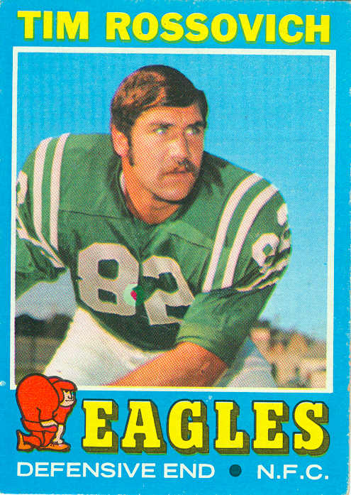 Tim Rossovich - The Eagles' #1 pick in the 1968 draft was probably more notable for his off-field activities (like eating glass and setting his hair on fire) than for his football accomplishments. After starting at left defensive end for 2 1/2 seasons, he moved to middle linebacker midway through the 1970 season, replacing long-time veteran Dave Lloyd. After the 1971 season, he moved on to the Chargers. Rossovich played for the WFL's Philadelphia Bell for the 1974-75 seasons, then returned to the NFL with the Oilers in 1976.